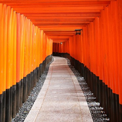 全国に約3万社あるといわれている稲荷神社の総本宮が伏見稲荷大社です。平成23年には御鎮座1300年を迎えた歴史ある神社で、商売繁昌・五穀豊穣の神様として全国から参拝者が多く訪れます。中でも奥社へ向かう参道にある朱色の鳥居のトンネルは千本鳥居と呼ばれ、神秘的かつフォトジェニックなのでSNS映えのスポットとして人気があります。また、お稲荷さんといえばキツネですが、境内の至るところにキツネの像が鎮座しており、そのかわいらしさと表情の豊かさは印象的です。